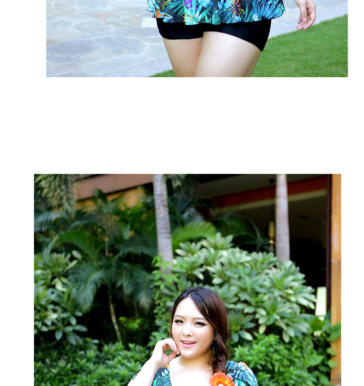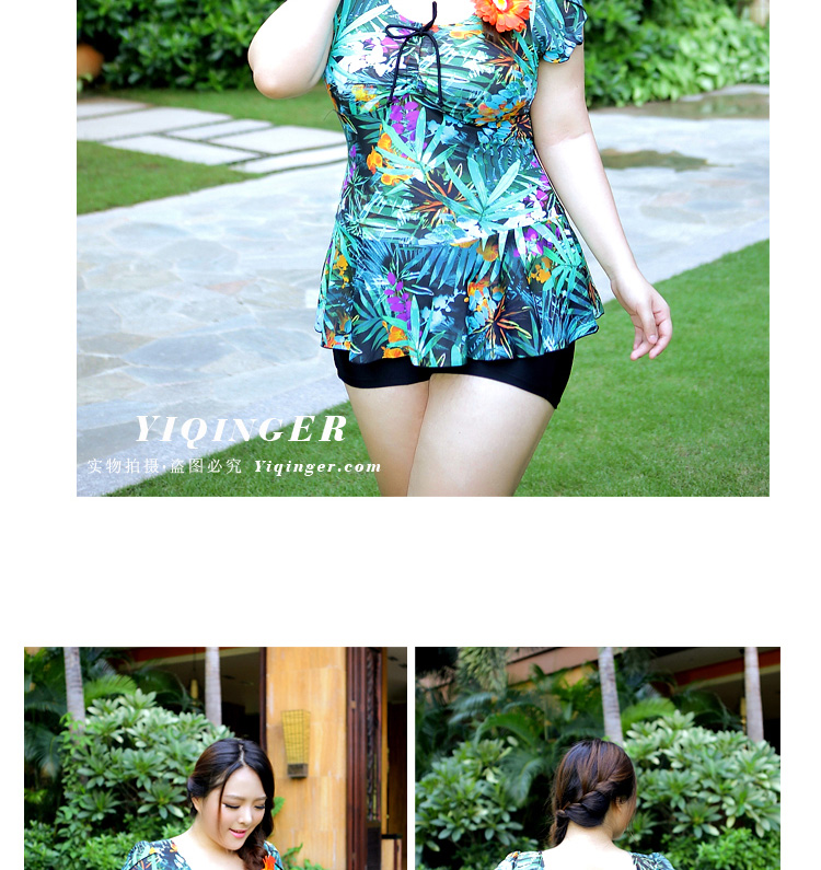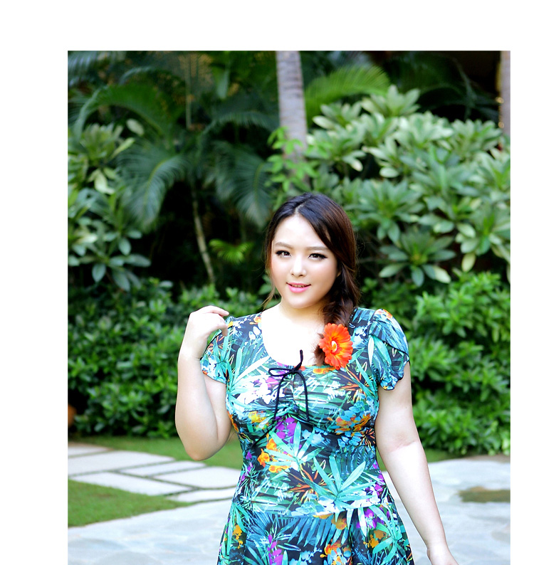 ชุดว่ายน้ำไซส์ใหญ่พร้อมส่ง :ชุดว่ายน้ำแฟชั่นสีเขียวแต่งลายใบไม้สดใส กางเกงขาสั้นใส่ด้านในน่ารักมากๆจ้า
