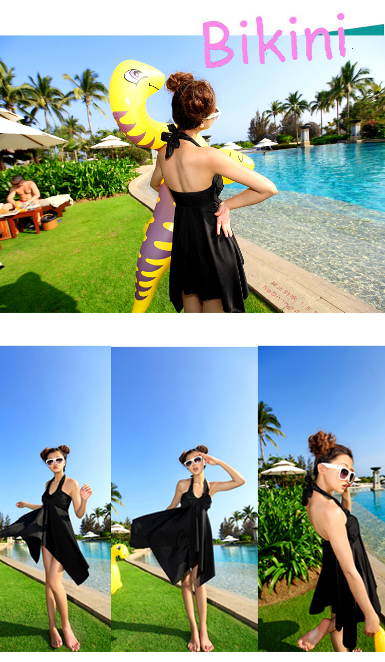 ชุดว่ายน้ำแฟชั่นพร้อมส่ง :ชุดว่ายน้ำสีดำผูกสายคล้องคอแต่งชายผ้าสีสันสดใส มีกางเกงใส่ด้านในน่ารักมากๆจ้า