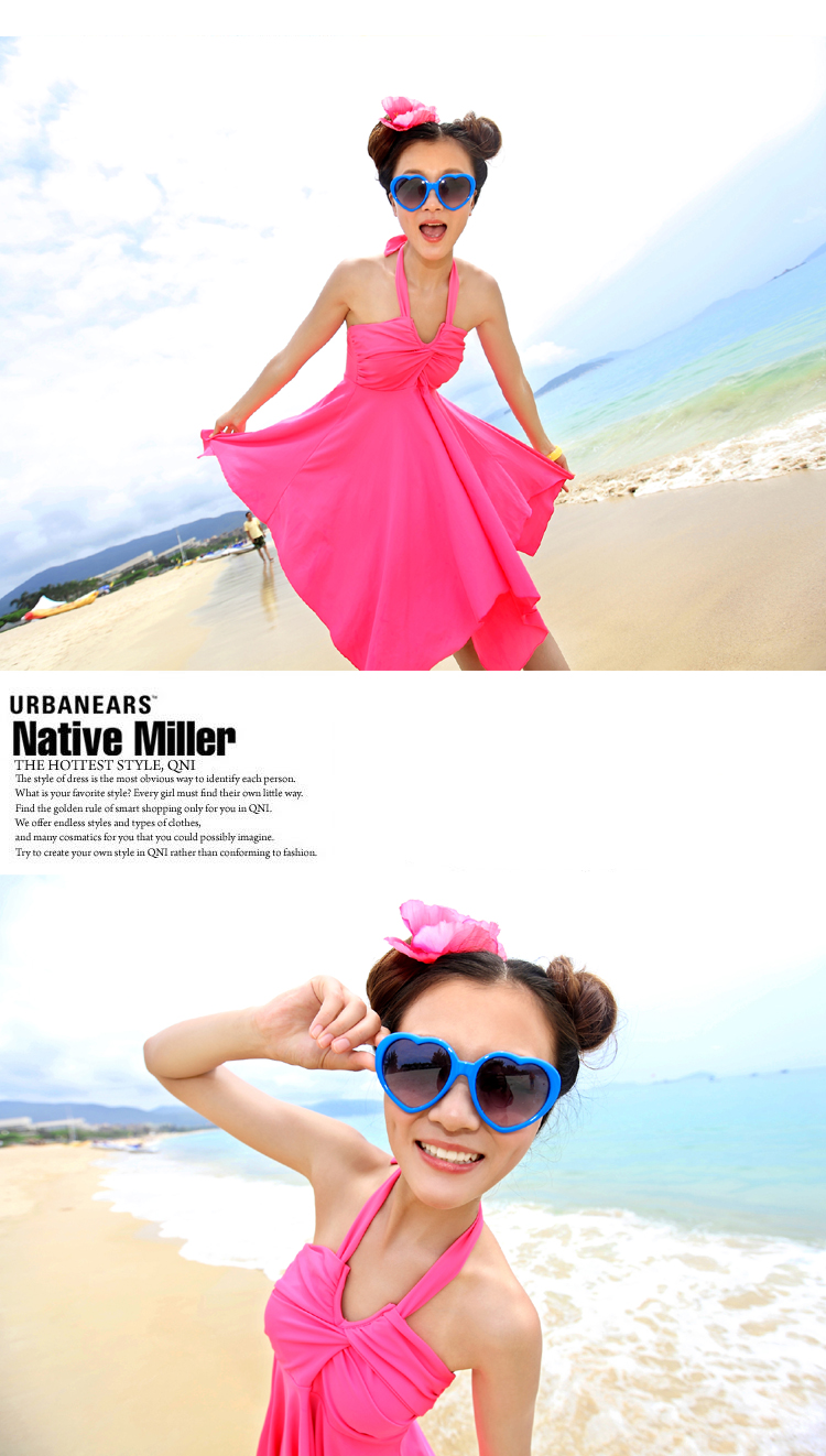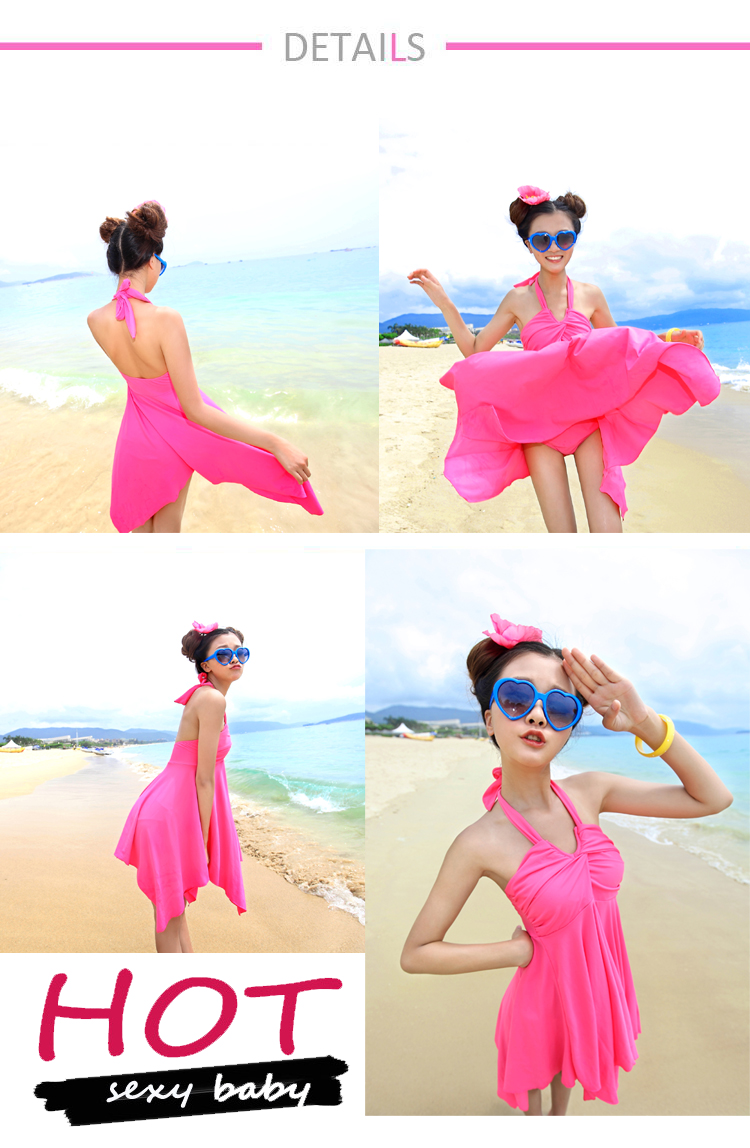 ชุดว่ายน้ำแฟชั่นพร้อมส่ง :ชุดว่ายน้ำสีชมพูผูกสายคล้องคอแต่งชายผ้าสีสันสดใส มีกางเกงใส่ด้านในน่ารักมากๆจ้า