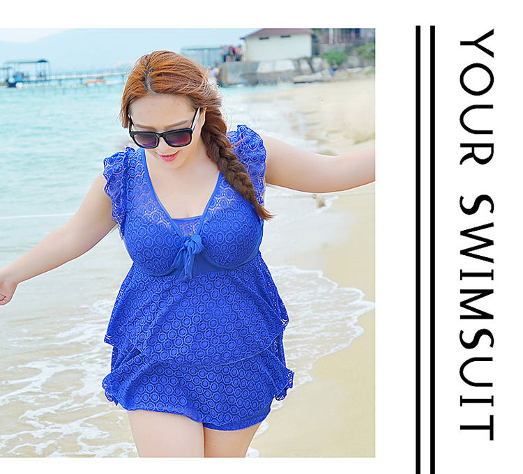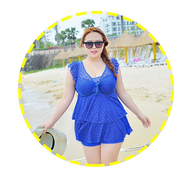 ชุดว่ายน้ำคนอ้วนพร้อมส่ง :ชุดว่ายน้ำแฟชั่นสีน้ำเงินแต่งลายผ้าแบบเก๋ กางเกงขาสั้นใส่ด้านใน น่ารักมากๆจ้า