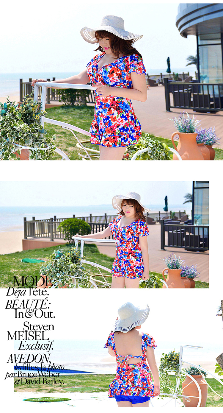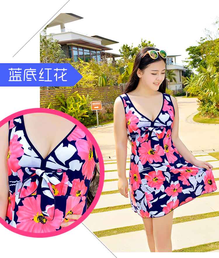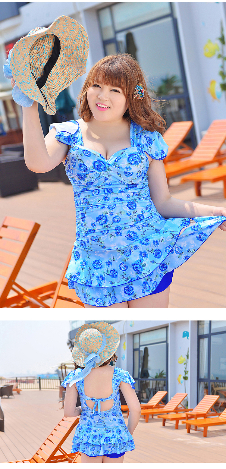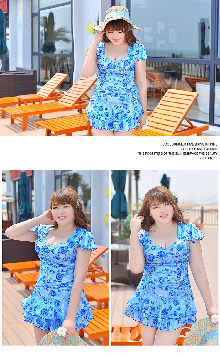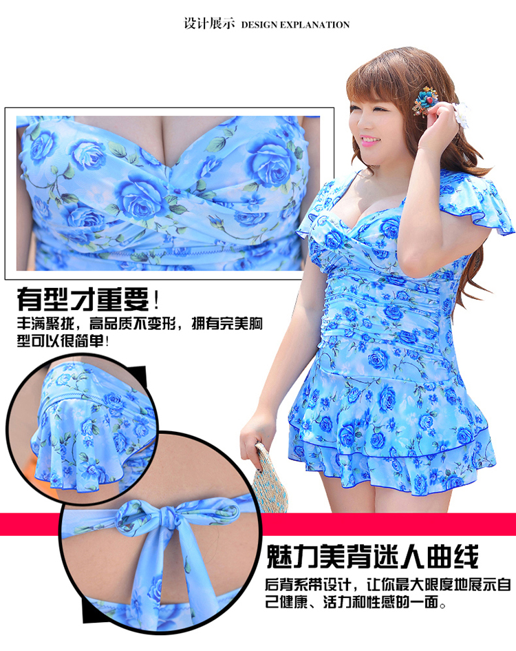 ชุดว่ายน้ำคนอ้วนพร้อมส่ง :ชุดว่ายน้ำแฟชั่นสีฟ้าแต่งลายผ้า กางเกงขาสั้นใส่ด้านในน่ารักมากๆจ้า