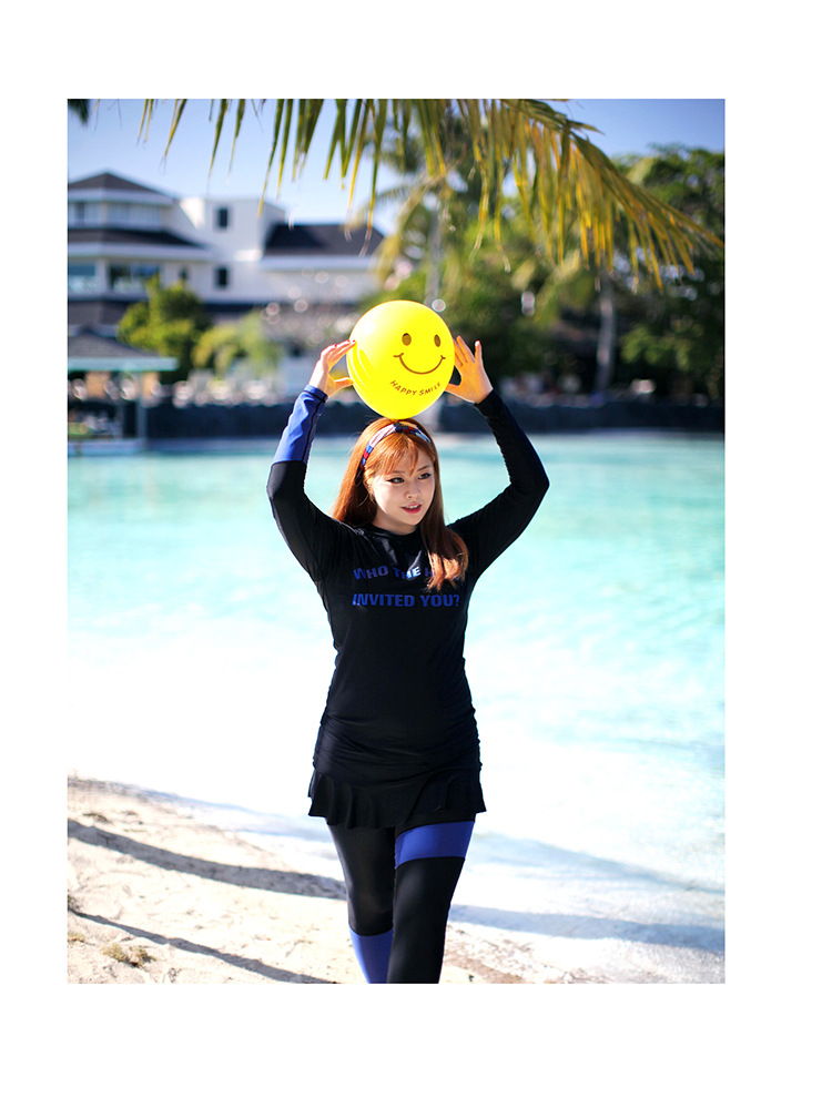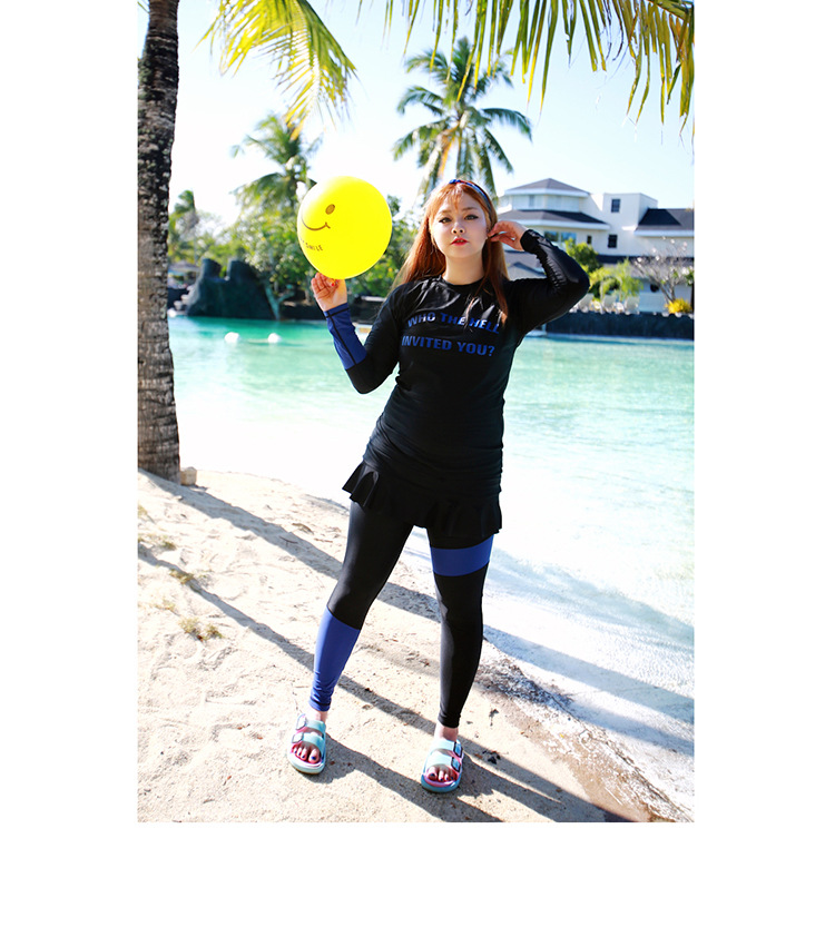 ชุดว่ายน้ำคนอ้วน พร้อมส่ง :ชุดว่ายน้ำไซส์ใหญ่แฟชั่นสีดำแต่งสีน้ำเงินแขนขายาว set 4 ชิ้นใส่ได้หลายแบบมาพร้อมกระโปรงแบบสวยน่ารักมากๆจ้า