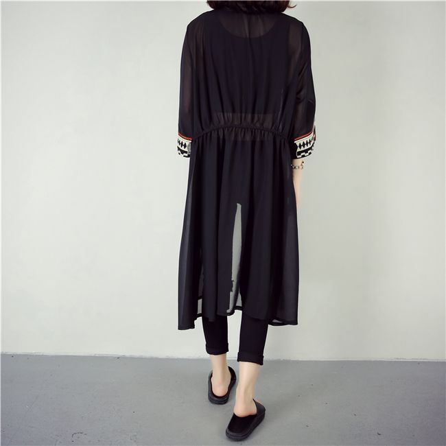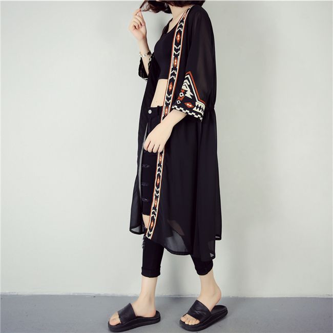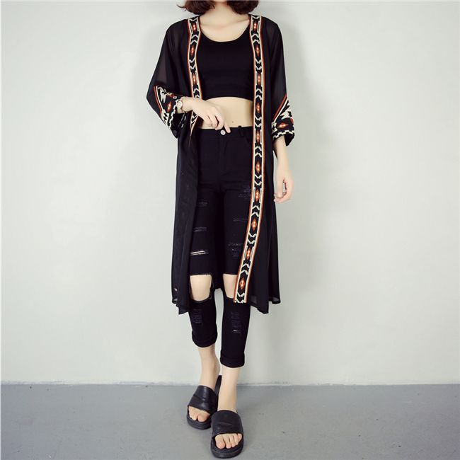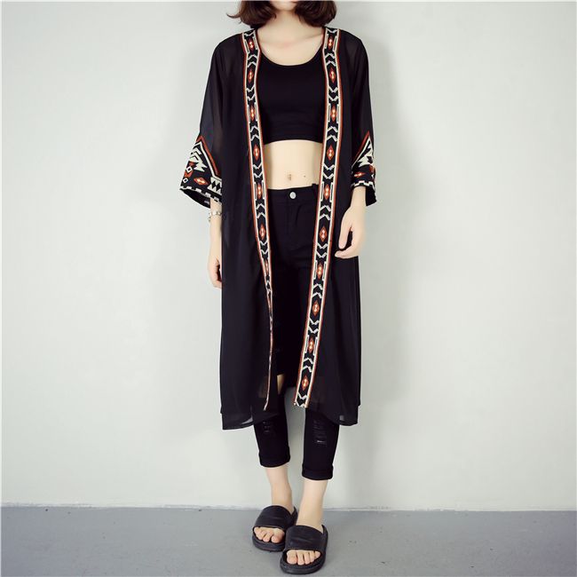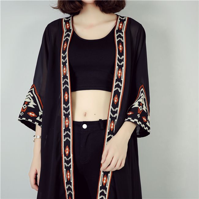 เสื้อคลุมแฟชั่น พร้อมส่ง : เสื้อคลุมสีดำแต่งขอบลายโบฮีเมียน แบบเก๋มากจ้า