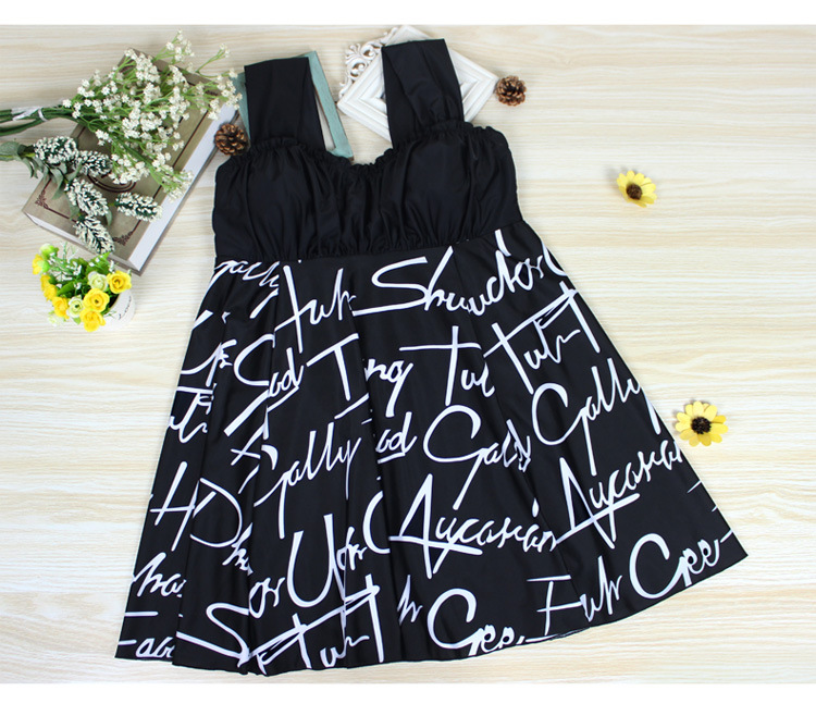 ชุดว่ายน้ำคนอ้วน พร้อมส่ง :ชุดว่ายน้ำไซส์ใหญ่แฟชั่นสีดำขาว แต่งลายอักษรสีขาว มีกางเกงขาสั้นใส่ด้านในแบบน่ารักมากๆจ้า