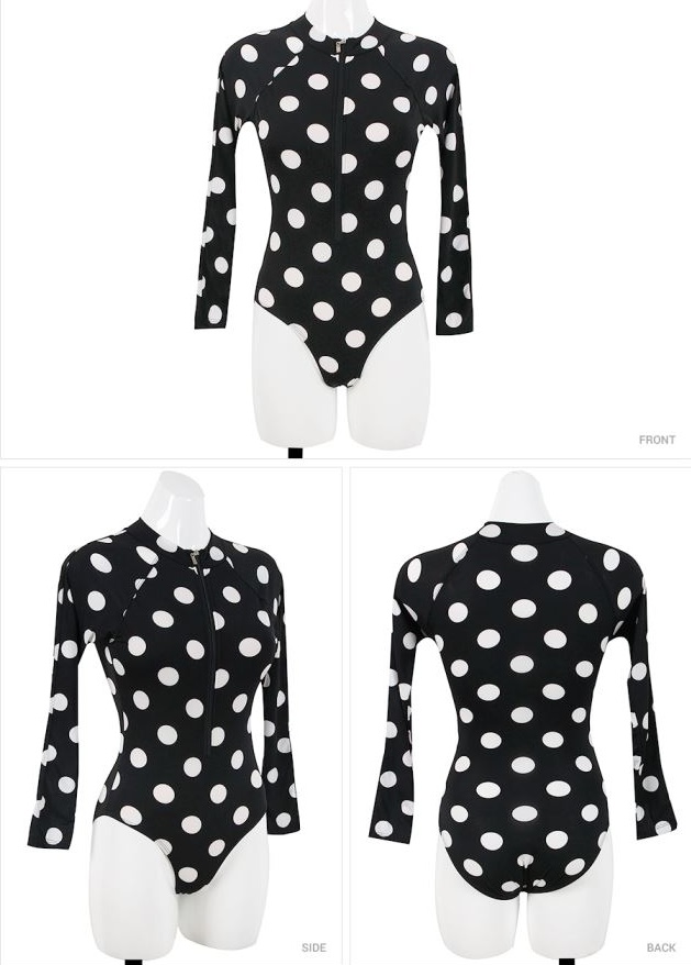 ชุดว่ายน้ำแฟชั่นพร้อมส่ง :ชุดว่ายน้ำวันพีชสีน้ำเงินแต่งลายจุดแขนยาวแบบเก๋ น่ารักมากๆจ้า