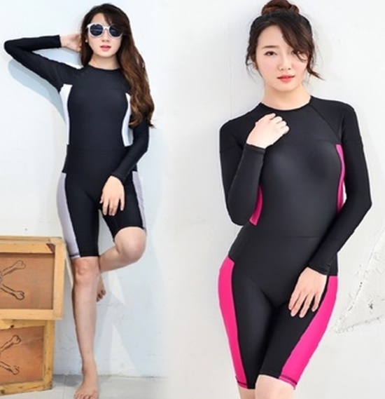 ชุดว่ายน้ำคนอ้วนพร้อมส่ง :ชุดว่ายน้ำแฟชั่นสีดำชมพูแขนยาวสีสันสดใส น่ารักมากๆจ้า