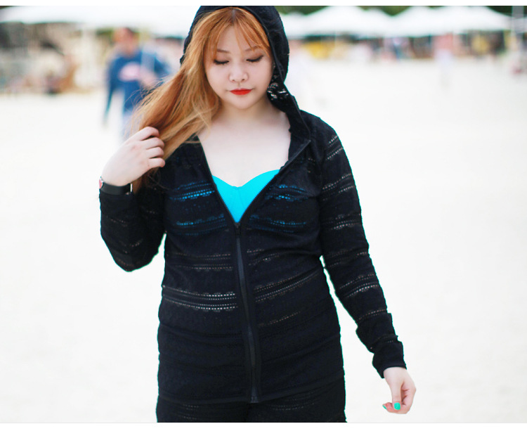 ชุดว่ายน้ำคนอ้วน พร้อมส่ง :ชุดว่ายน้ำไซส์ใหญ่แบบสปอร์ตสีดำซิปหน้า set 5 ชิ้นมีเสื้อแขนยาวมี Hood บรา บิกินี่ กางเกงขาสั้น กางเกงขายาว แบบสวยคุ้มสุดๆจ้า
