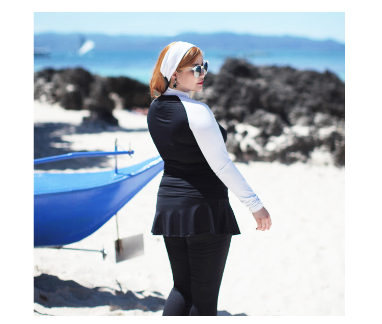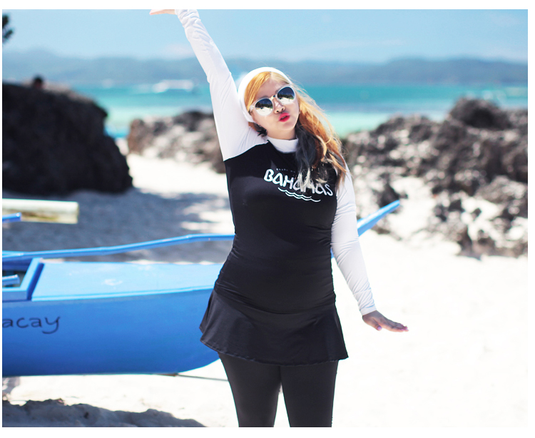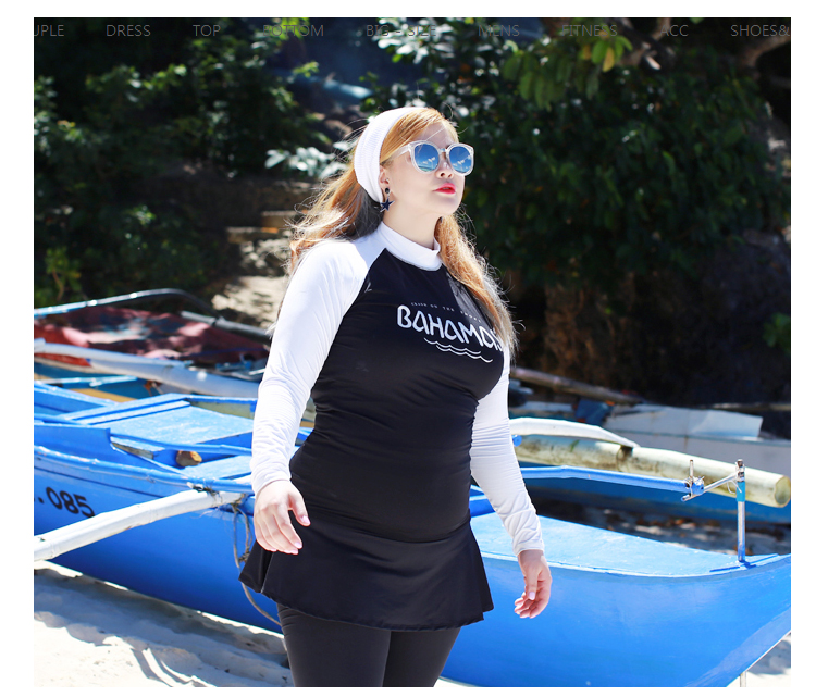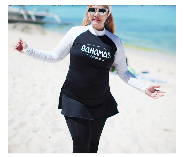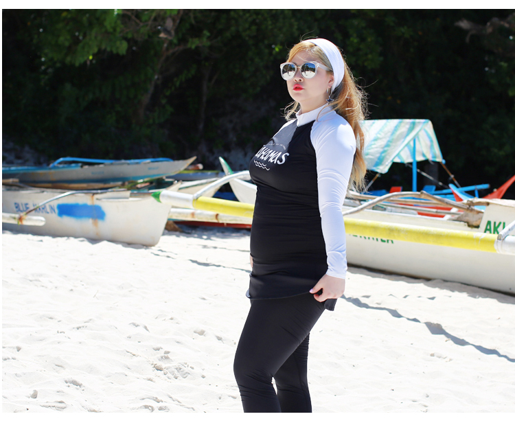 ชุดว่ายน้ำคนอ้วน พร้อมส่ง :ชุดว่ายน้ำไซส์ใหญ่แบบสปอร์ตสีดำแต่งแขนสีขาว set 4 ชิ้นมีเสื้อแขนยาว บิกินี่ กระโปรงและกางเกงขายาว แบบสวยคุ้มสุดๆจ้า