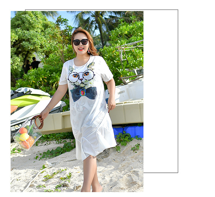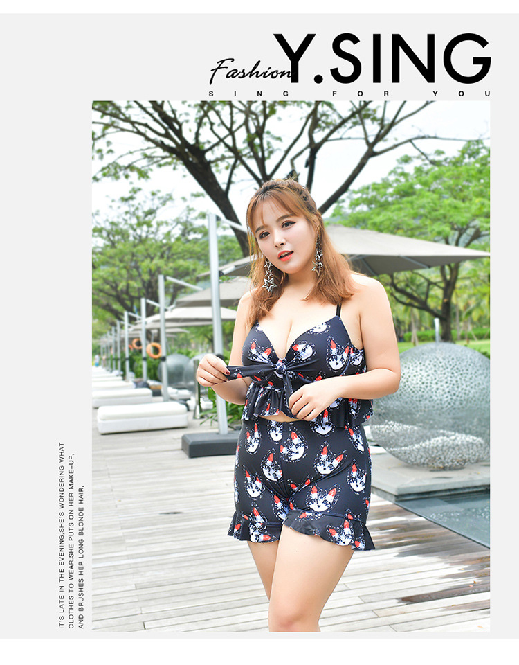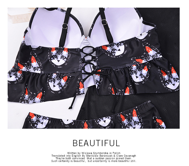 ชุดว่ายน้ำคนอ้วน พร้อมส่ง :ชุดว่ายน้ำไซส์ใหญ่สีขาวแต่งลายแมว set 3ชิ้น มี บรา กางเกงขาสั้นและเสื้อคลุมตัวยาว แต่งสีสันสดใสแบบน่ารักมากๆจ้า