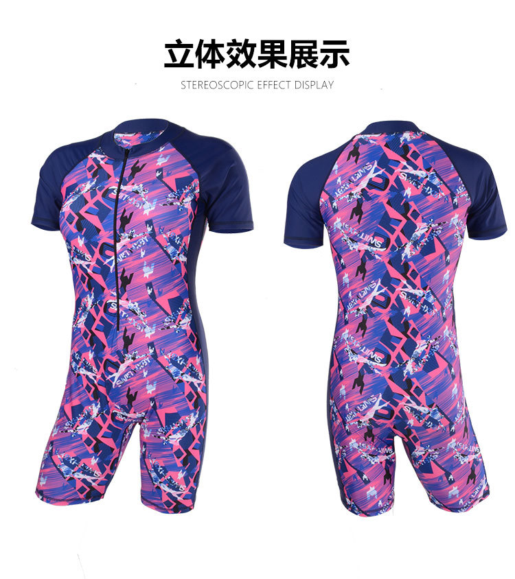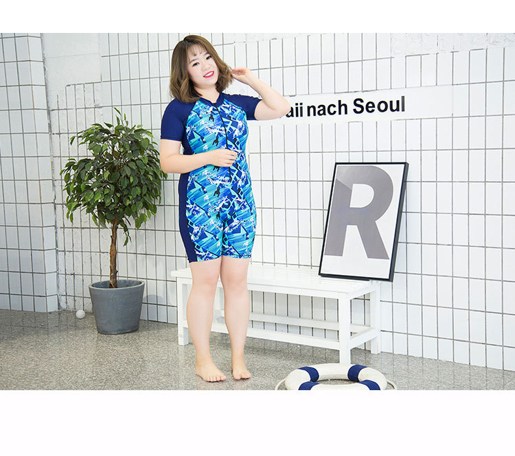 ชุดว่ายน้ำคนอ้วน แบบสปอร์ตพร้อมส่ง :ชุดว่ายน้ำไซส์ใหญ่แขนสั้นสีฟ้า แต่งลายแบบสวยมากๆจ้า