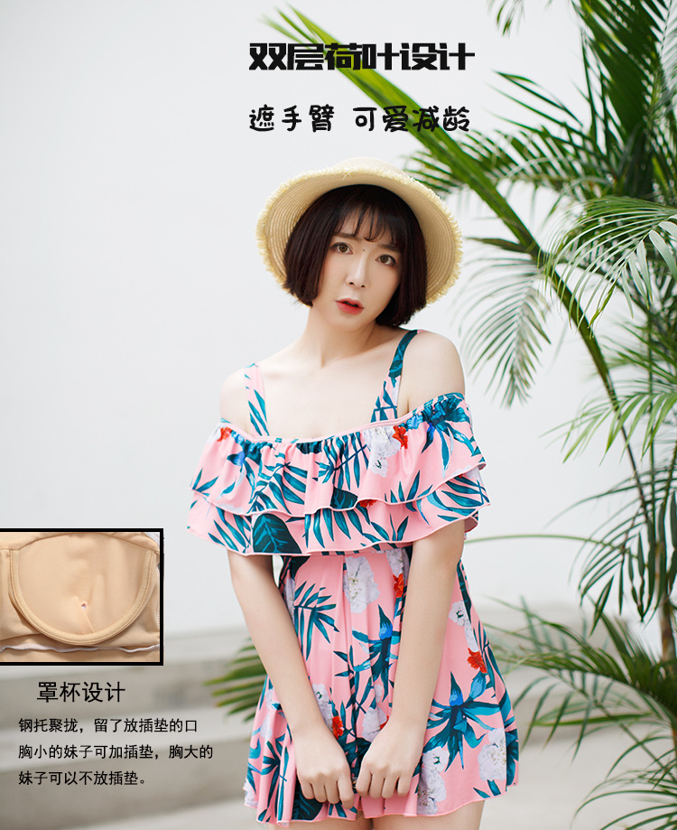 ชุดว่ายน้ำ bigsize คนอ้วนพร้อมส่ง :ชุดว่ายน้ำไซส์ใหญ่สีชมพูแต่งระบาย ลายดอกไม้สีสันสดใส กางเกงขาสั้นใส่ด้านในแบบเก๋น่ารักสุดๆจ้า