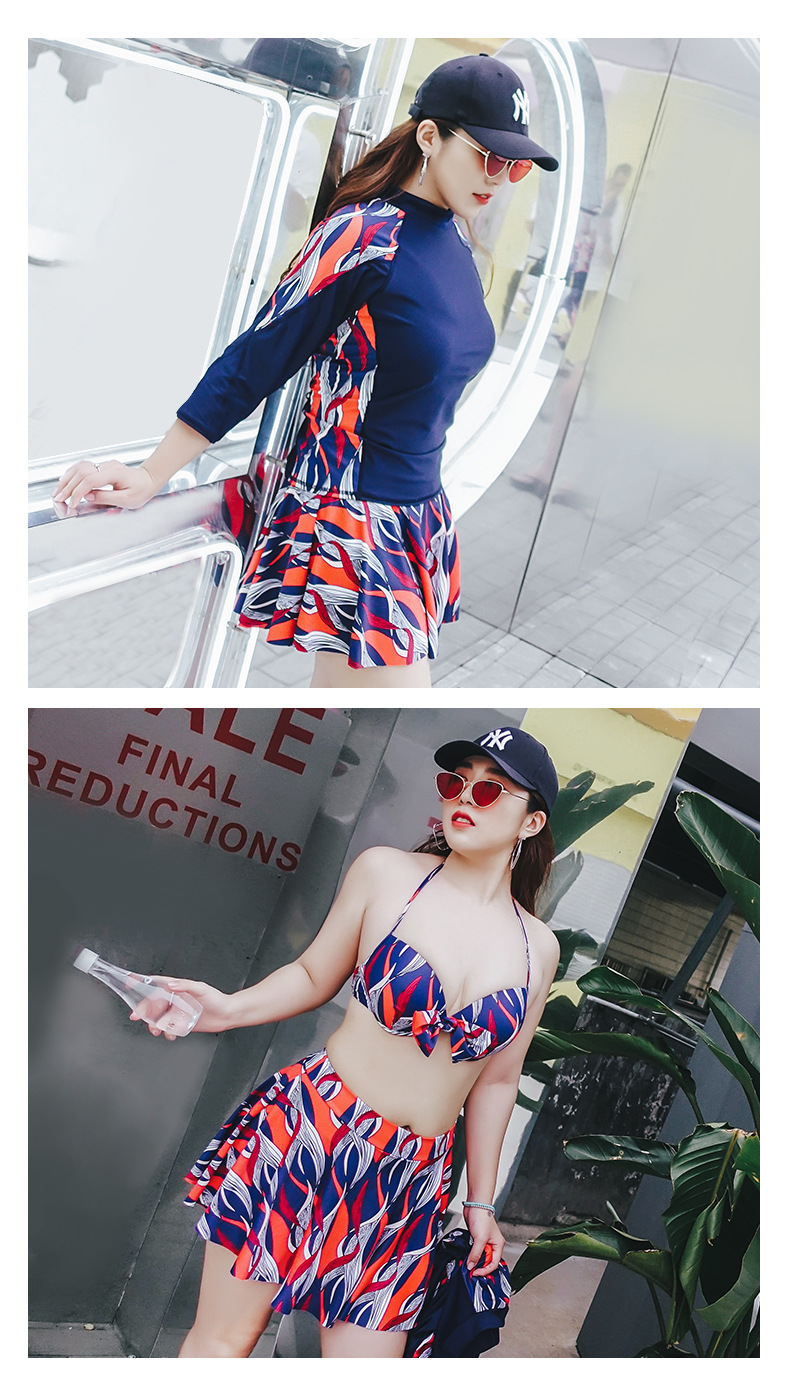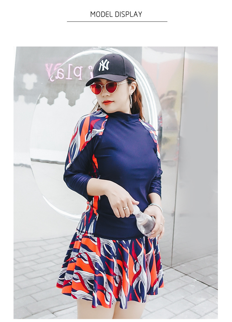 ชุดว่ายน้ำแขนยาวสาวอ้วน ไซส์4xlพร้อมส่ง :ชุดว่ายน้ำไซส์ใหญ่แขนยาวสีน้ำเงินset 3ชิ้นมีบรา กระโปรงติดกางเกงขาสั้นและเสื้อแขนยาวแต่งลายสีสันสดใสสวยมากจ้า