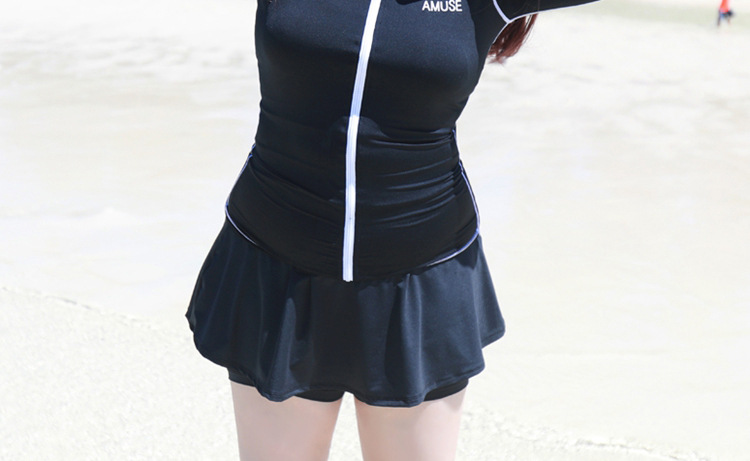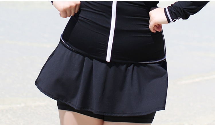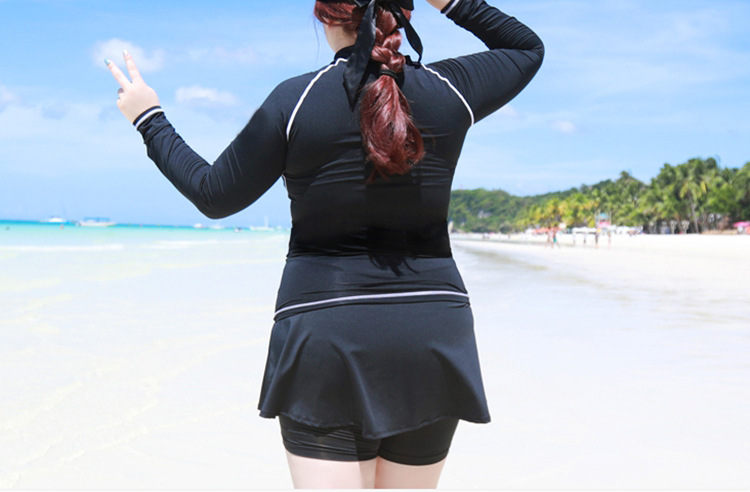 ชุดว่ายน้ำคนอ้วน แบบสปอร์ตพร้อมส่ง :ชุดว่ายน้ำไซส์ใหญ่สีดำแขนยาว แต่งขอบสีขาว set 5 ชิ้น มีเสื้อแขนยาวซิปหน้า บรา กระโปรง กางเกงขาสั้น และกางเกงขายาว แบบสวยคุ้มสุดๆจ้า