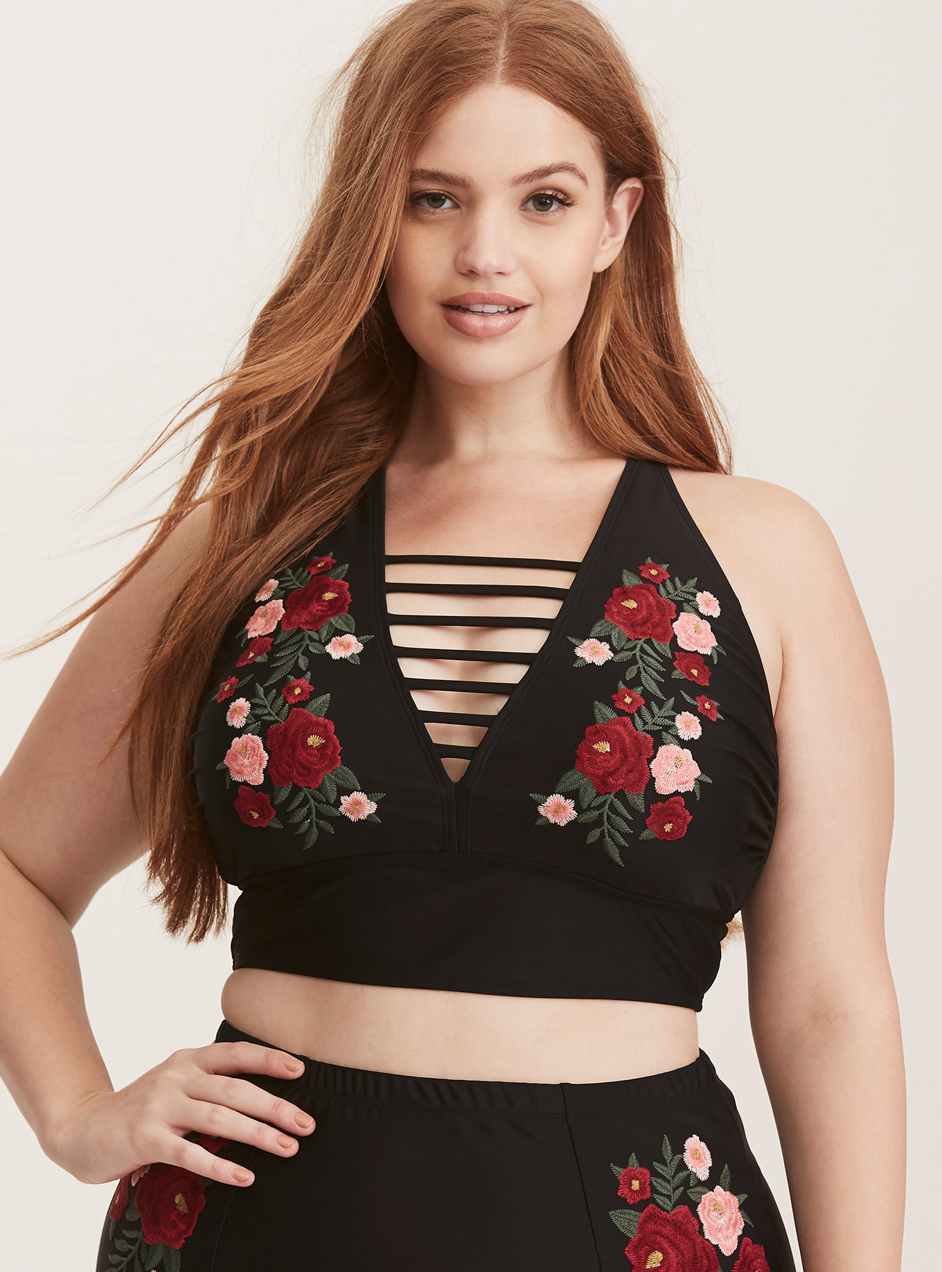 ชุดว่ายน้ำทูพีช ไซส์ใหญ่ พร้อมส่ง :ชุดว่ายน้ำคนอ้วนสีดำแต่งลายดอกไม้สีสันสดใสแบบเก๋ sexy มากๆจ้า