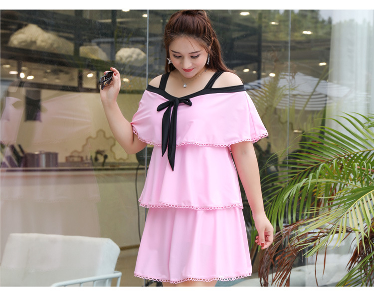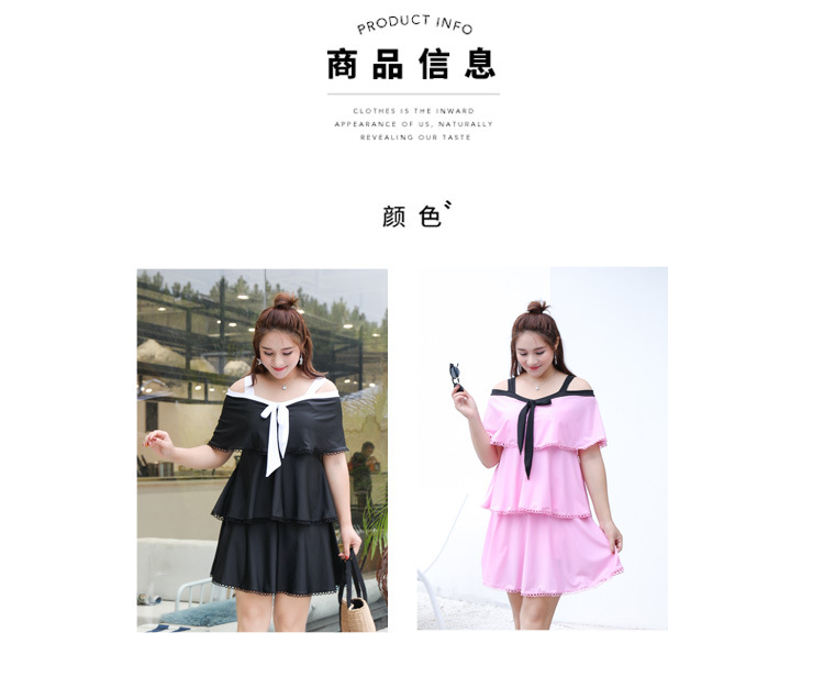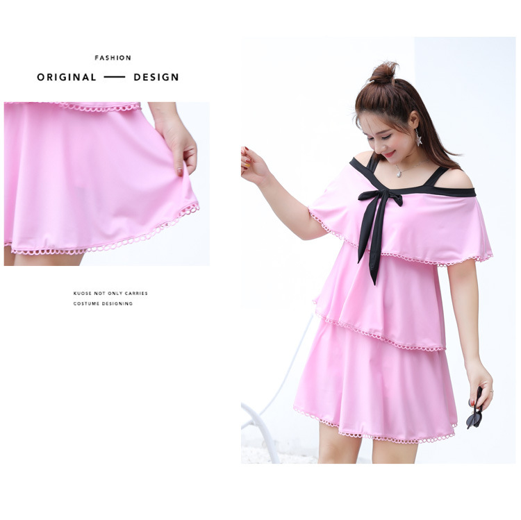 ชุดว่ายน้ำไซส์ใหญ่ 6xlพร้อมส่ง :ชุดว่ายน้ำคนอ้วนสีชมพูแต่งระบายและโบว์ด้านหน้า มีกางเกงขาสั้นใส่ด้านในแบบสวยน่ารักมากๆจ้า