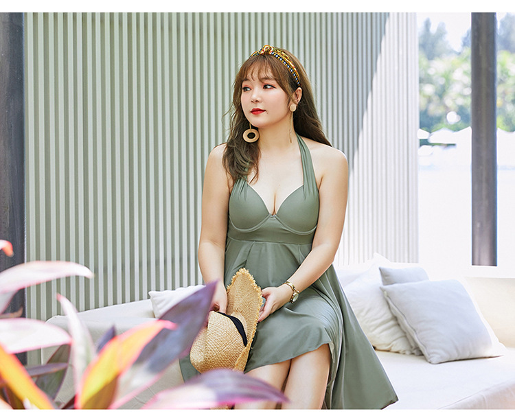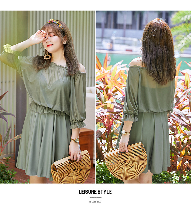 ชุดว่ายน้ำคนอ้วน พร้อมส่ง :ชุดว่ายน้ำไซส์ใหญ่สีเขียวผูกคอ มาพร้อมเสื้อคลุมแบบเก๋ มีกางเกงขาสั้นใส่ด้านในแบบสวยมากๆจ้า