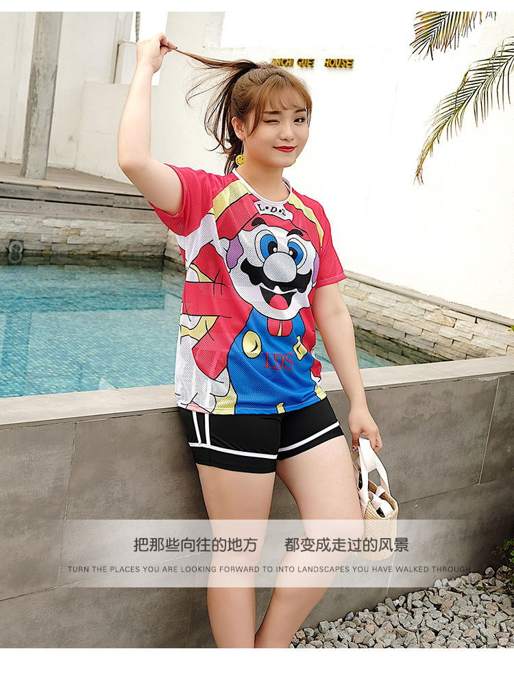 ชุดว่ายน้ำคนอ้วน 6xl พร้อมส่ง :ชุดว่ายน้ำไซส์ใหญ่สีดำแต่งลายการ์ตูน set 3 ชิ้น มีบรา กางเกงขาสั้น และเสื้อคลุมแบบสวยน่ารักมากๆจ้า