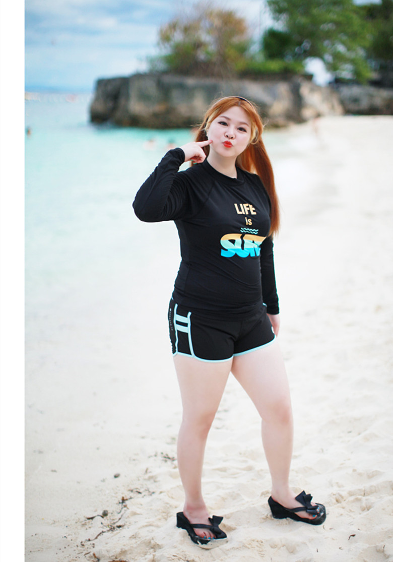 ชุดว่ายน้ำคนอ้วน แบบสปอร์ตพร้อมส่ง :ชุดว่ายน้ำไซส์ใหญ่สีดำแขนยาวแต่งลายอักษรขอบฟ้า set 4 ชิ้น มีเสื้อแขนยาว บรา บิกินี่ กางเกงขาสั้น แบบสวยน่ารักมากๆจ้า