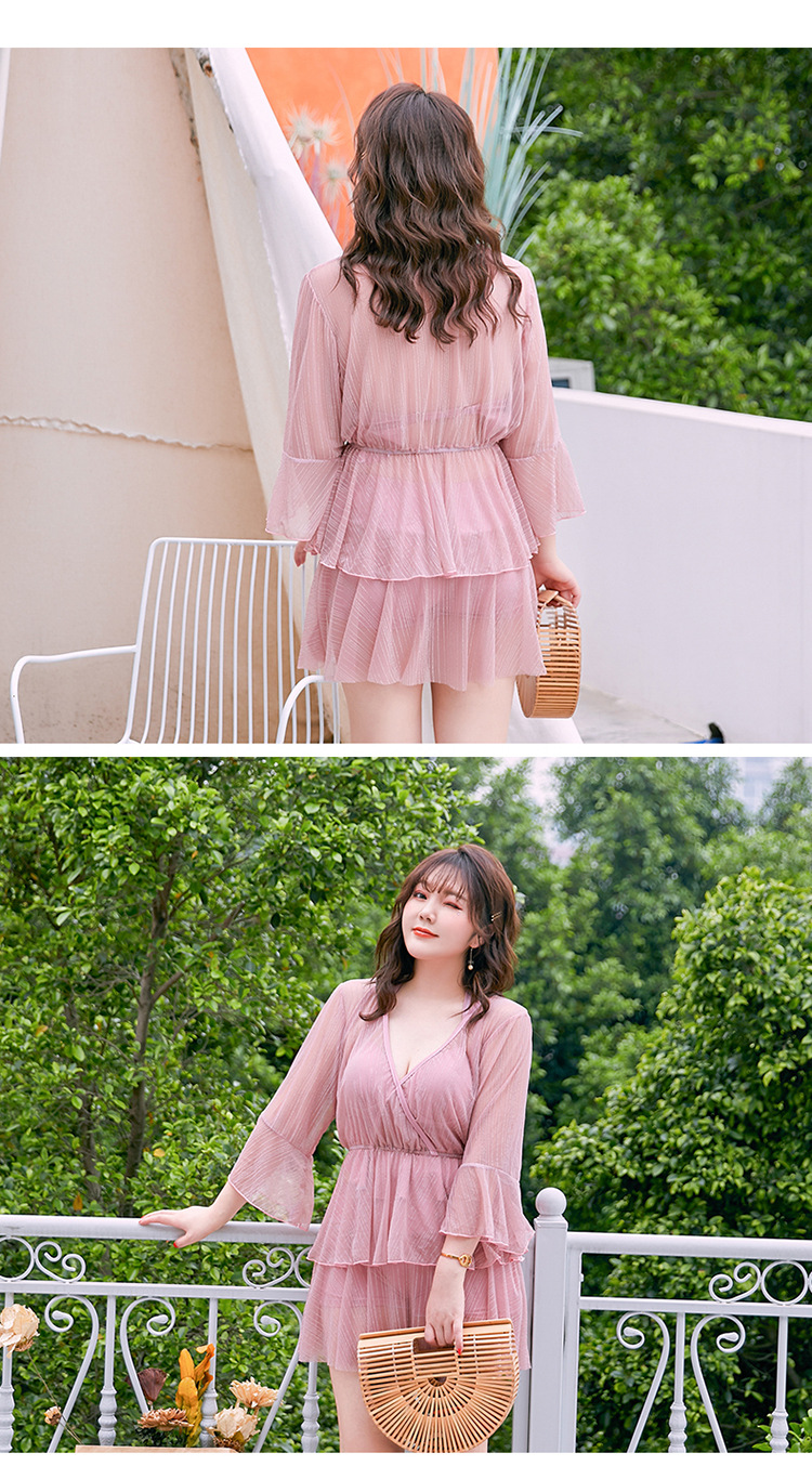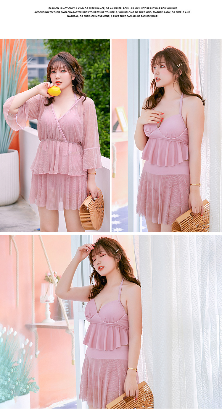 ชุดว่ายน้ำคนอ้วน 5xl พร้อมส่ง :ชุดว่ายน้ำไซส์ใหญ่สีชมพูผูกคอ set 3 ชิ้นมีบรา กระโปรงติดกางเกงขาสั้นและเสื้อคลุม แบบสวยมากๆจ้า