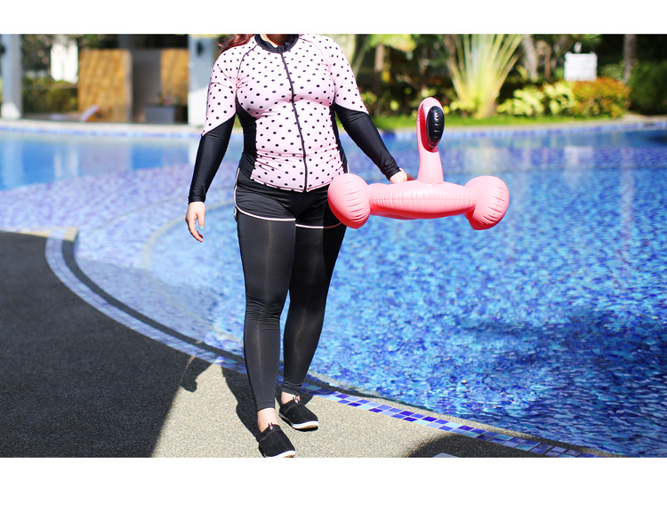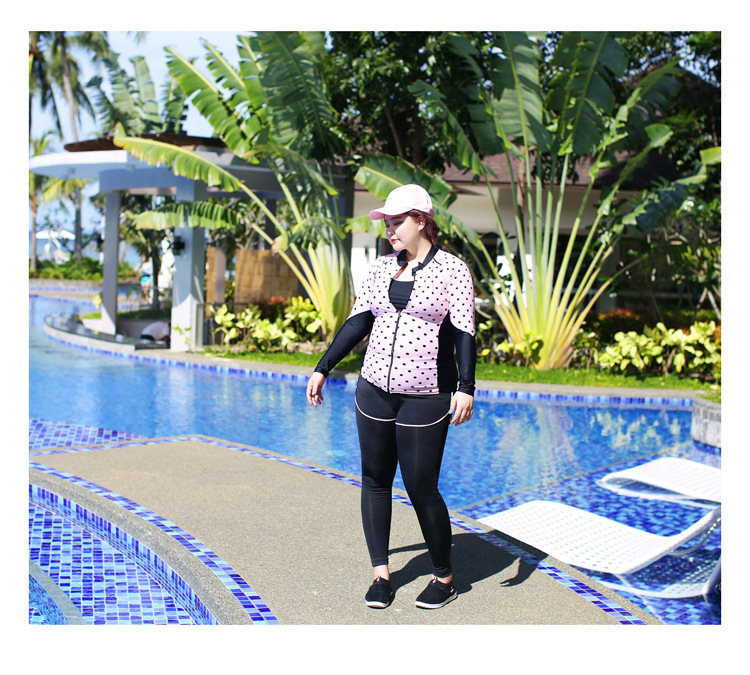 ชุดว่ายน้ำไซส์ใหญ่ แบบสปอร์ต 5XLพร้อมส่ง : ชุดว่ายน้ำคนอ้วนสีดำชมพูแต่งลายจุด set 5 ชิ้นมีบรา บิกินี่ กางเกงขาสั้น กางเกงขายาวและเสื้อคลุมซิปหน้า แบบสวยคุ้มมากๆจ้า