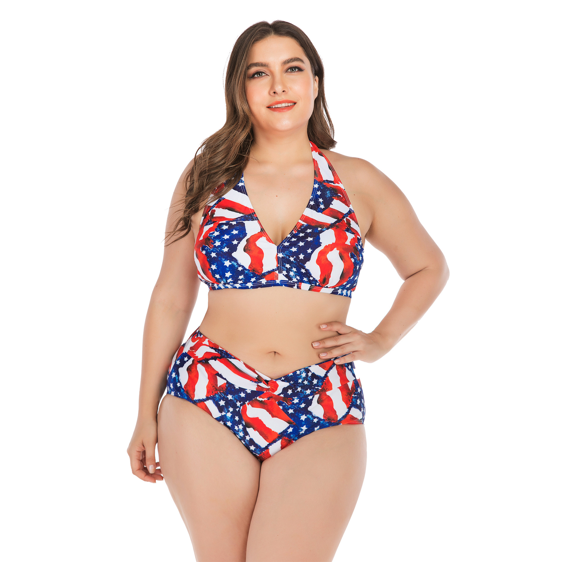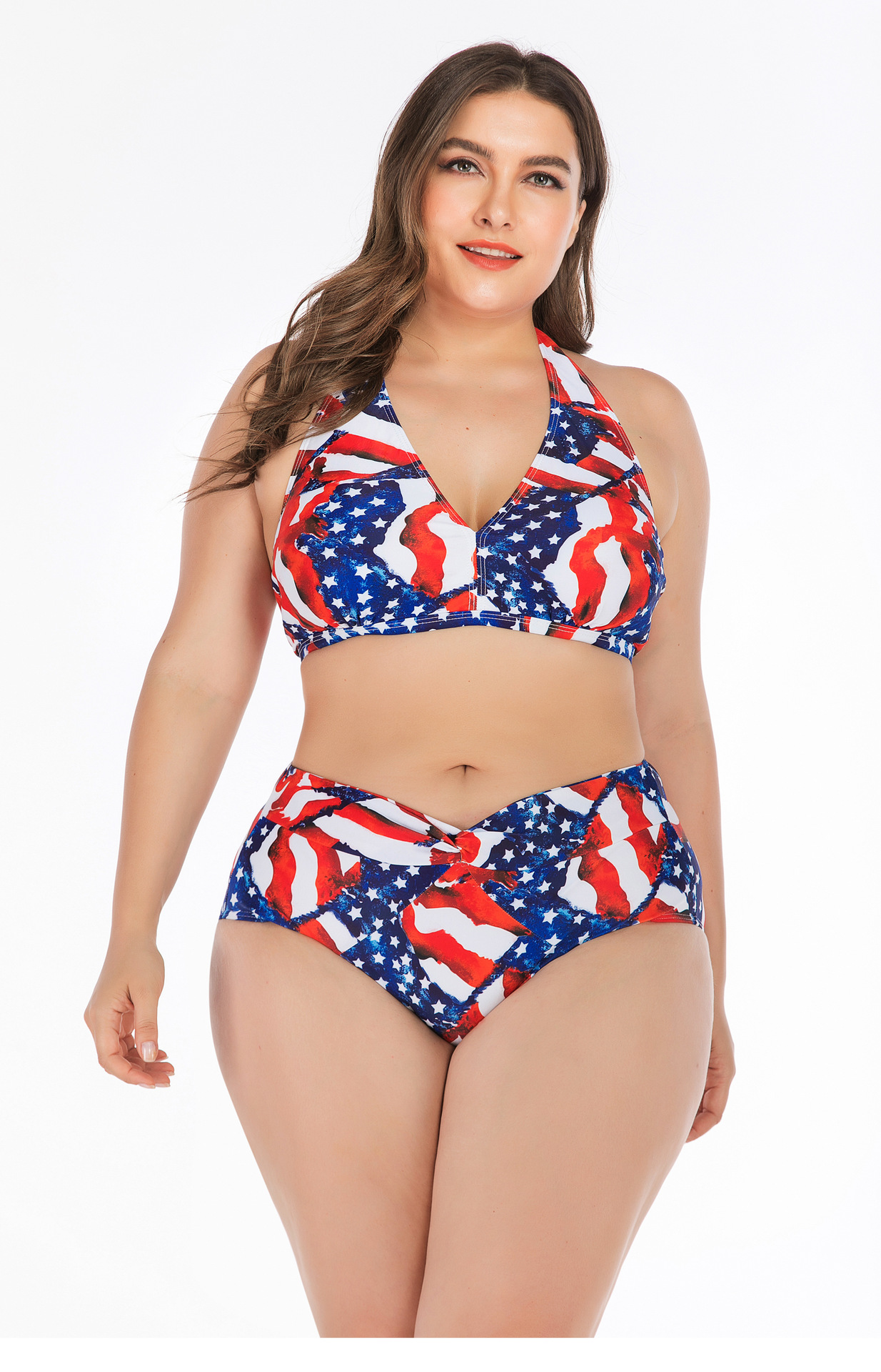 ชุดว่ายน้ำทูพีช คนอ้วน 4xl พร้อมส่ง :ชุดว่ายน้ำไซส์ใหญ่สีน้ำเงินแดงแต่งลายดาวสายผูกคอ สีสันสดใสแบบสวย sexy มากๆจ้า