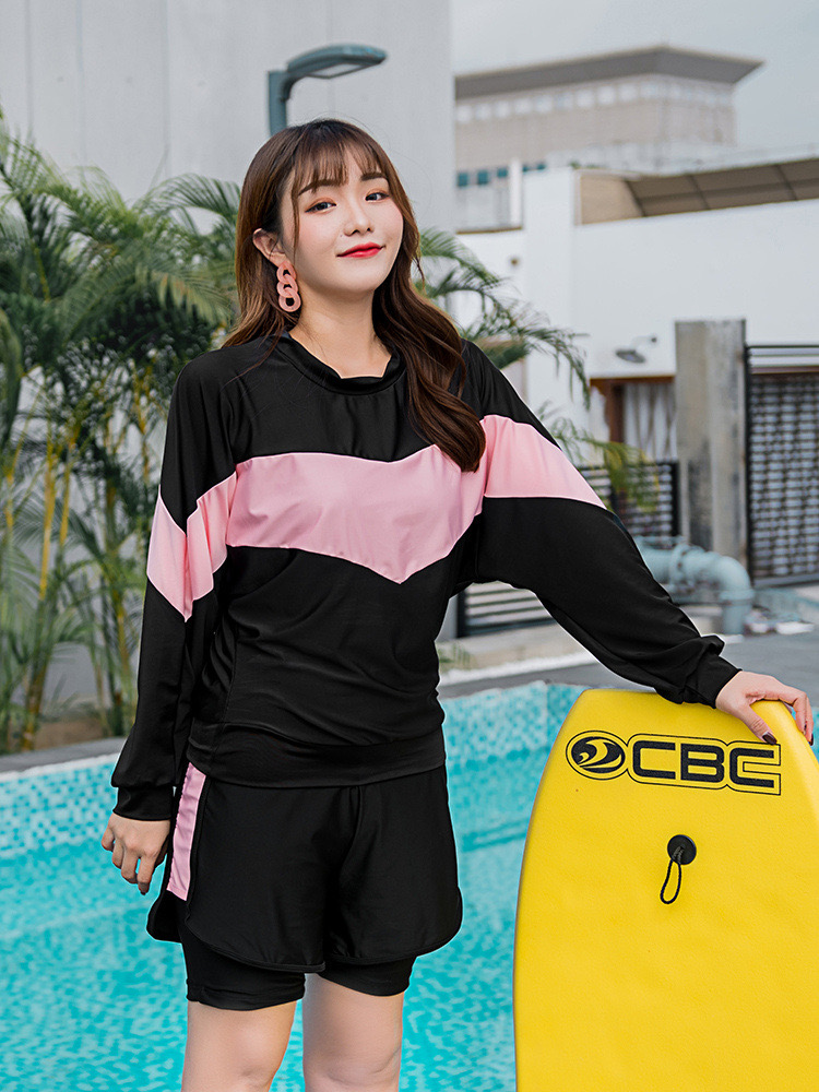 ชุดว่ายน้ำไซส์ใหญ่ 7xl 9xl พร้อมส่ง :ชุดว่ายน้ำคนอ้วนแขนยาวแบบสปอร์ตสีดำแต่งลายคาดสีเทาสินค้าSet 3 ชิ้น มีบรา กางเกงและเสื้อคลุมแขนยาว แบบสวยน่ารักมากๆจ้า