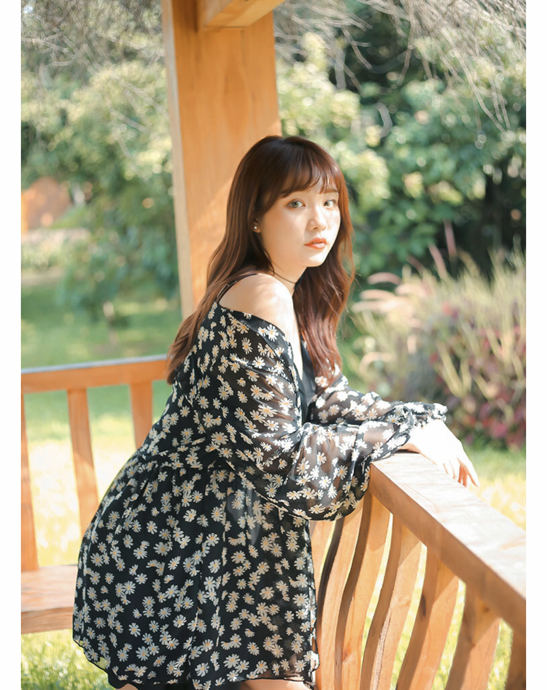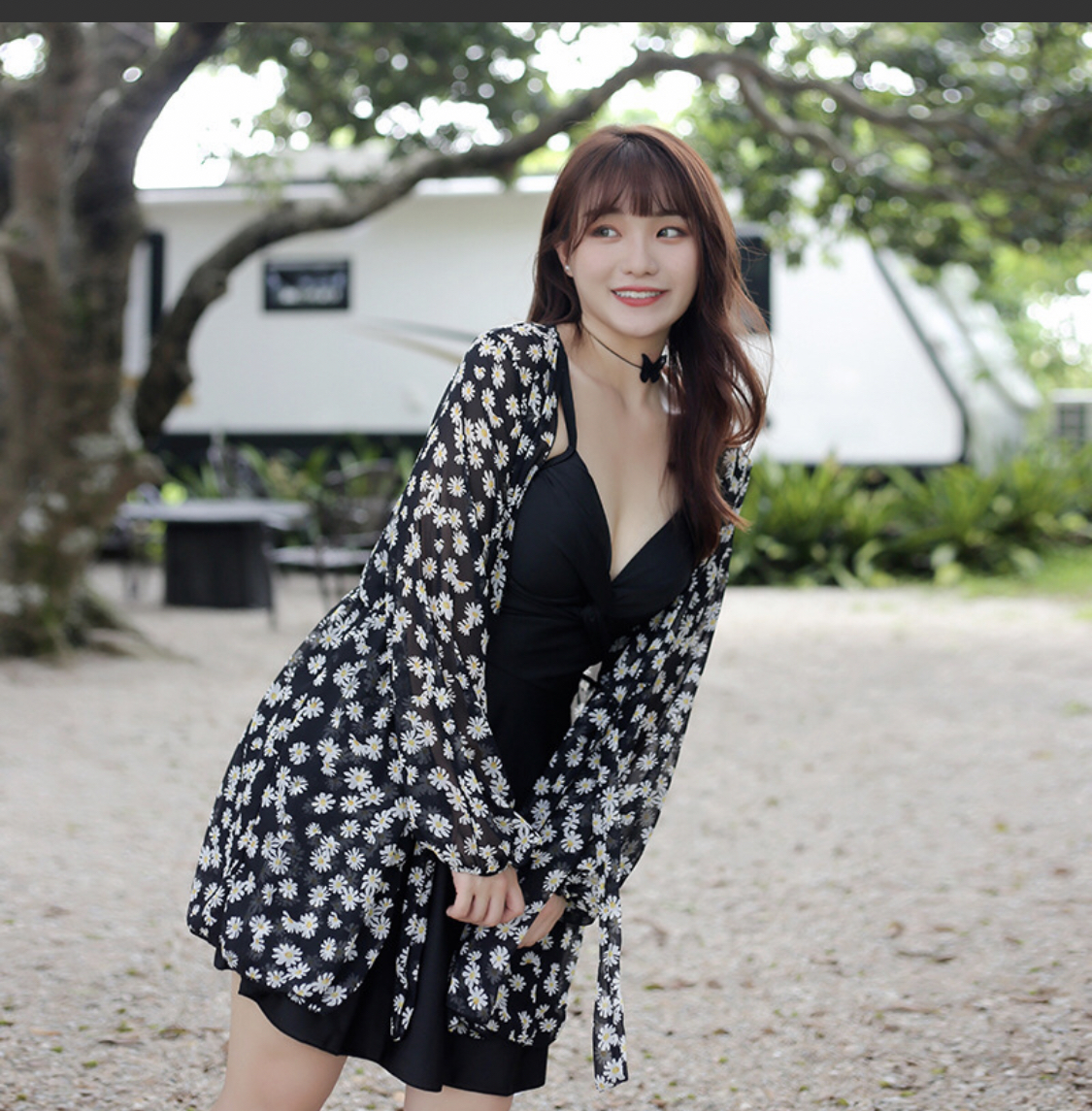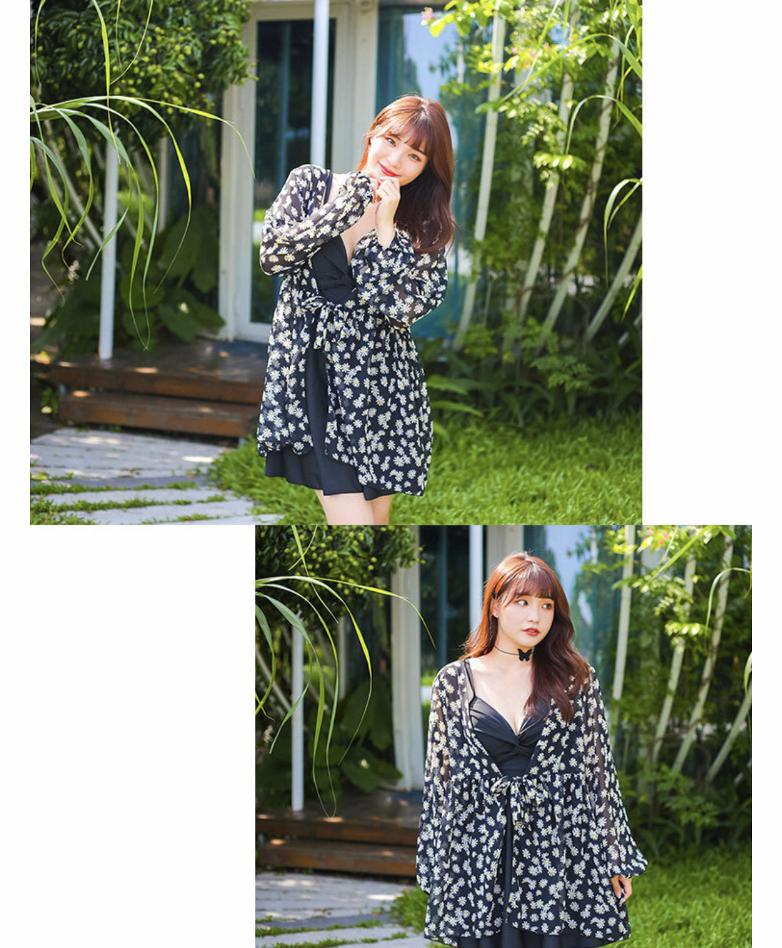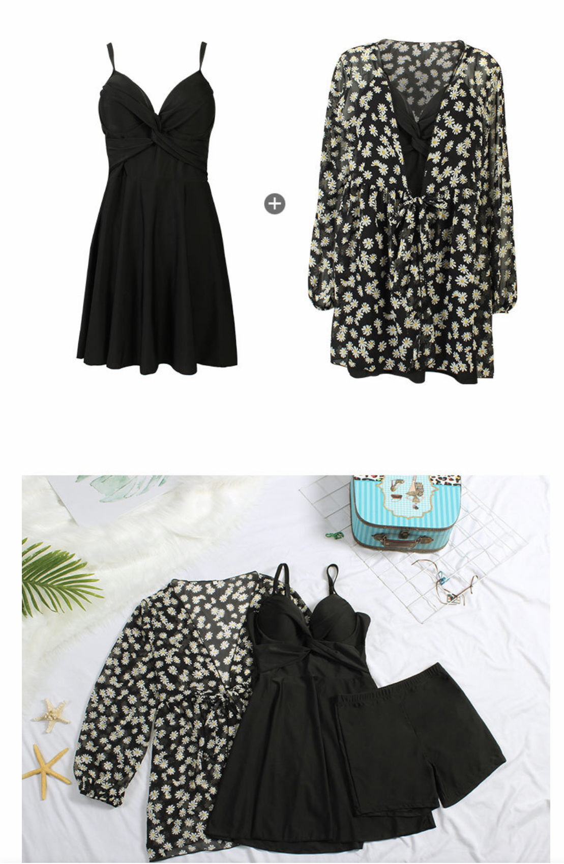 ชุดว่ายน้ำคนอ้วน 6xl พร้อมส่ง :ชุดว่ายน้ำไซส์ใหญ่ชุดเที่ยวทะเลสีดำมาพร้อมเสื้อคลุมลายดอกไม้ มีกางเกงขาสั้นใส่ด้านในแบบสวยน่ารักมากๆจ้า