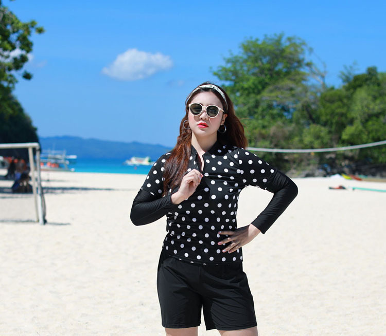ชุดว่ายน้ำไซส์ใหญ่ 4xl แบบสปอร์ตพร้อมส่ง :ชุดว่ายน้ำคนอ้วนแขนยาวสีดำแต่งลายจุด set 4 ชิ้น มีเสื้อแขนยาว บิกินี่ กางเกงขาสั้น กางเกงขายาว แบบสวยคุ้มมากๆจ้า