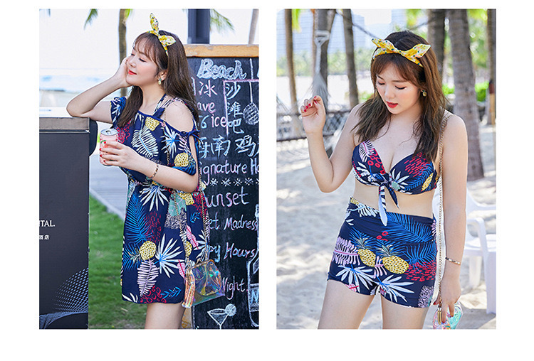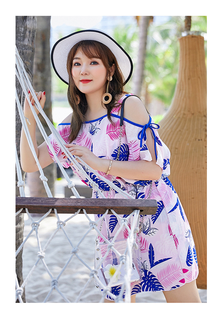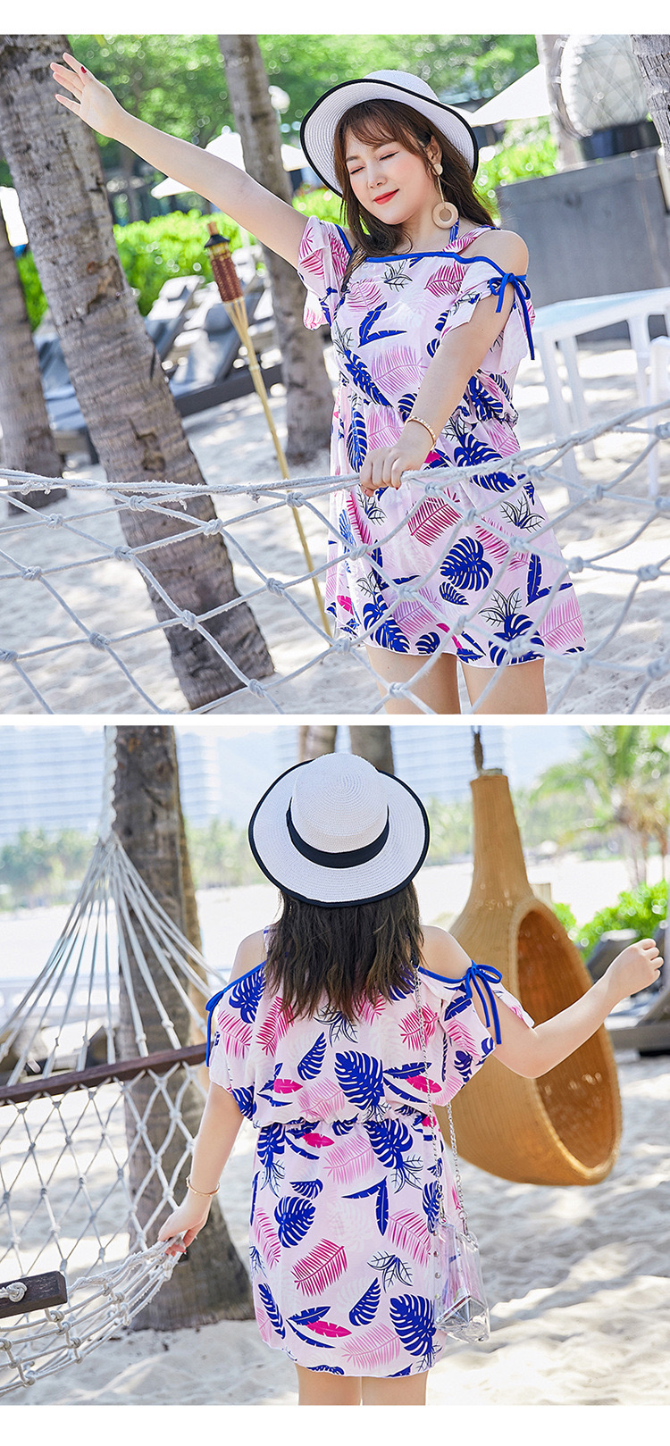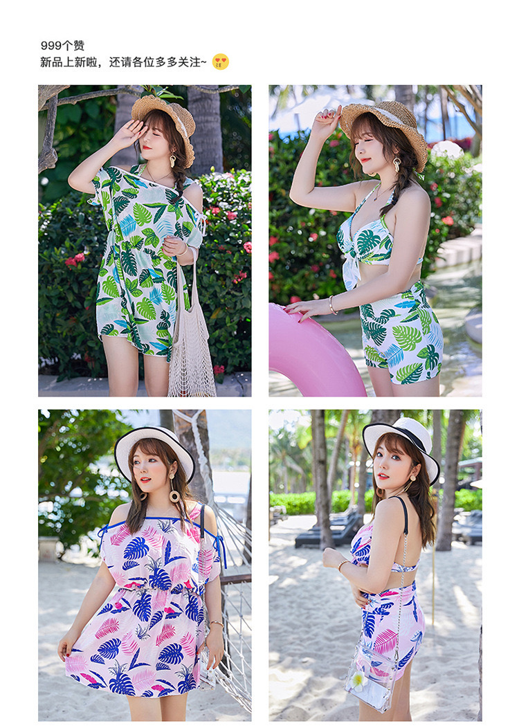 ชุดว่ายน้ำไซส์ใหญ่ 5xl พร้อมส่ง:ชุดว่ายน้ำคนอ้วนสีเขียวแต่งลายใบไม้ สายบราผูกคอ set 3 ชิ้นมี บรา กางเกงขาสั้นและชุดคลุมสีสันสดใส แบบสวยน่ารักมากๆจ้า