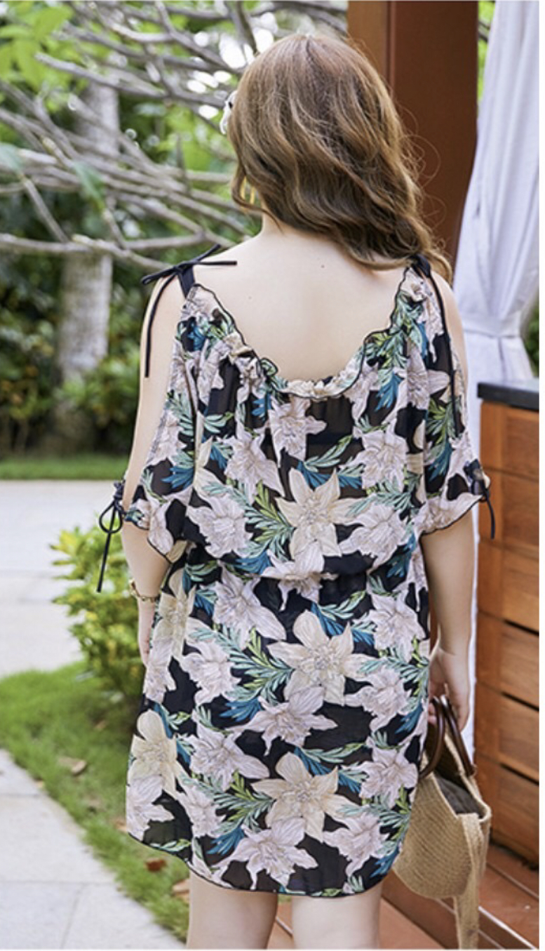 ชุดว่ายน้ำคนอ้วน 5xl พร้อมส่ง:ชุดว่ายน้ำไซส์ใหญ่ สีน้ำเงินแต่งลายดอกไม้ set 3 ชิ้นมีชุดคลุมเว้าไหล่ บราและกางเกงขาสั้น แบบสวยสดใสมากๆจ้า