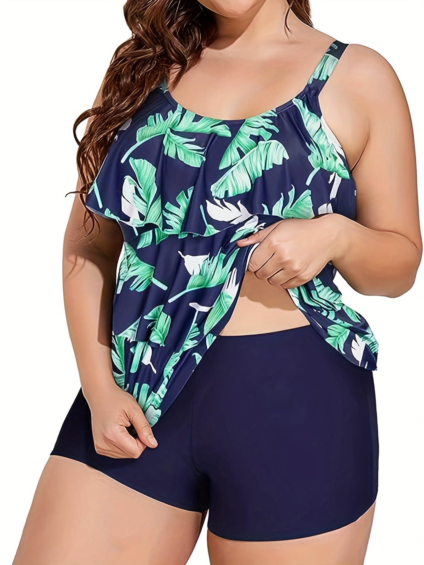 ชุดว่ายน้ำคนอ้วน 5xl พร้อมส่ง :ชุดว่ายน้ำไซส์ใหญ่สีน้ำเงินลายใบไม้สีเขียว แต่งระบายset 2 ชิ้นมีเสื้อกับกางเกงขาสั้นแบบสวยมากๆจ้า