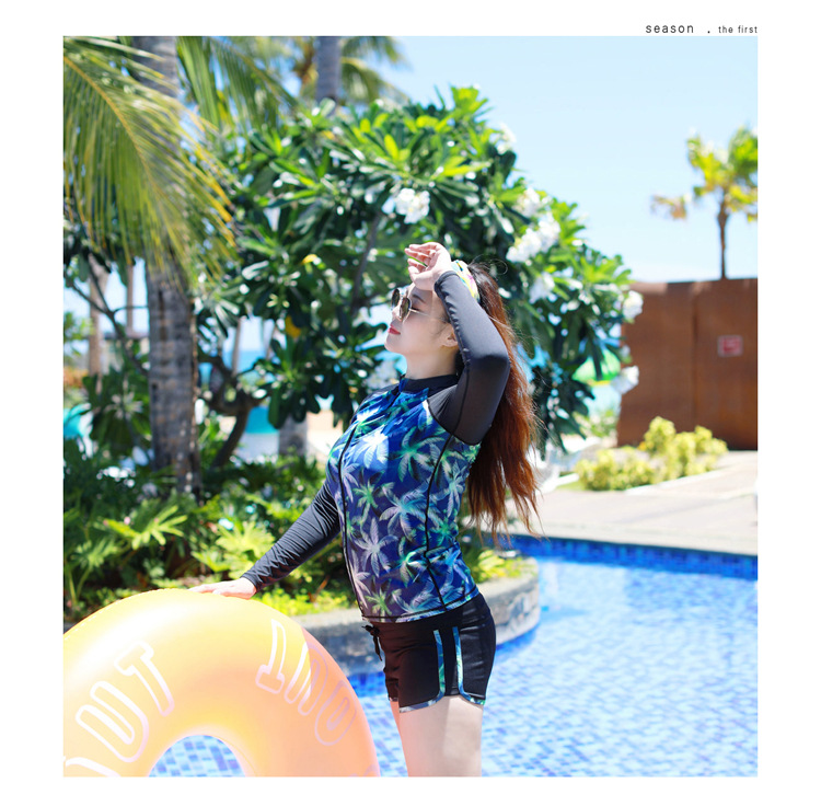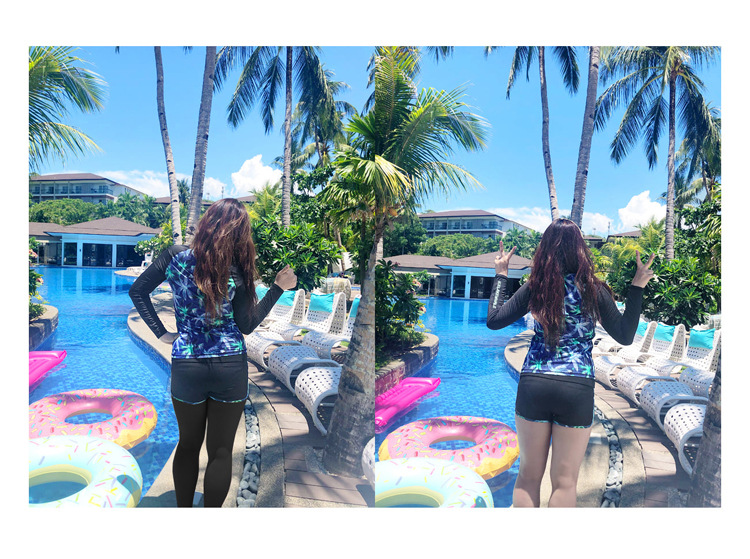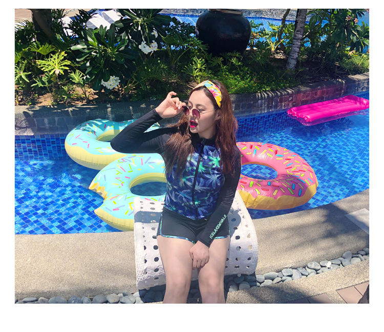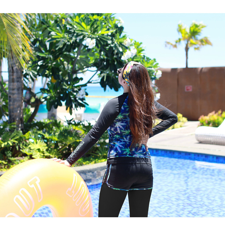 ชุดว่ายน้ำแขนยาว ขายาวไซส์ใหญ่ 5xl พร้อมส่ง:ชุดว่ายน้ำคนอ้วนสีดำแขนยาวแต่งลายต้นมะพร้าว set 5 ชิ้นมีเสื้อแขนยาวซิปหน้า บรา บิกินี่ กางเกงขาสั้น และกางเกงขายาว สีสันสดใส แบบสวยคุ้มมากๆจ้า