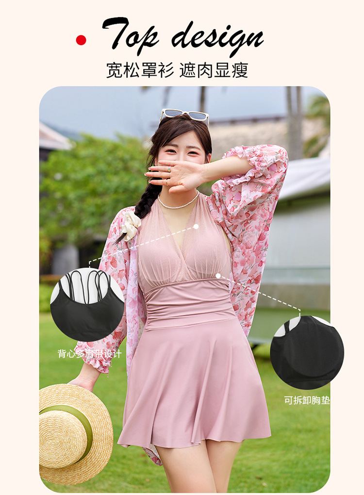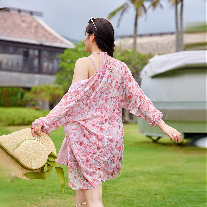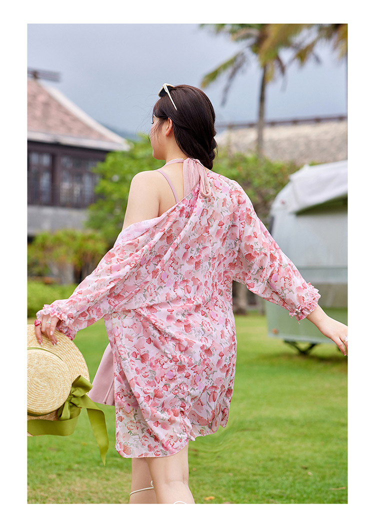 ชุดว่ายน้ำไซส์ใหญ่ 5xl พร้อมส่ง:ชุดว่ายน้ำคนอ้วน ชุดเที่ยวทะเลสีชมพู แต่งลายดอกไม้สีสันสดใส set 2 ชิ้นมีเสื้อคลุมลายดอกไม้และชุดมีผูกคอด้านหลังซีทรู มาพร้อมกางเกงขาสั้นด้านใน แบบสวยสุดๆ คุ้มมากๆจ้า