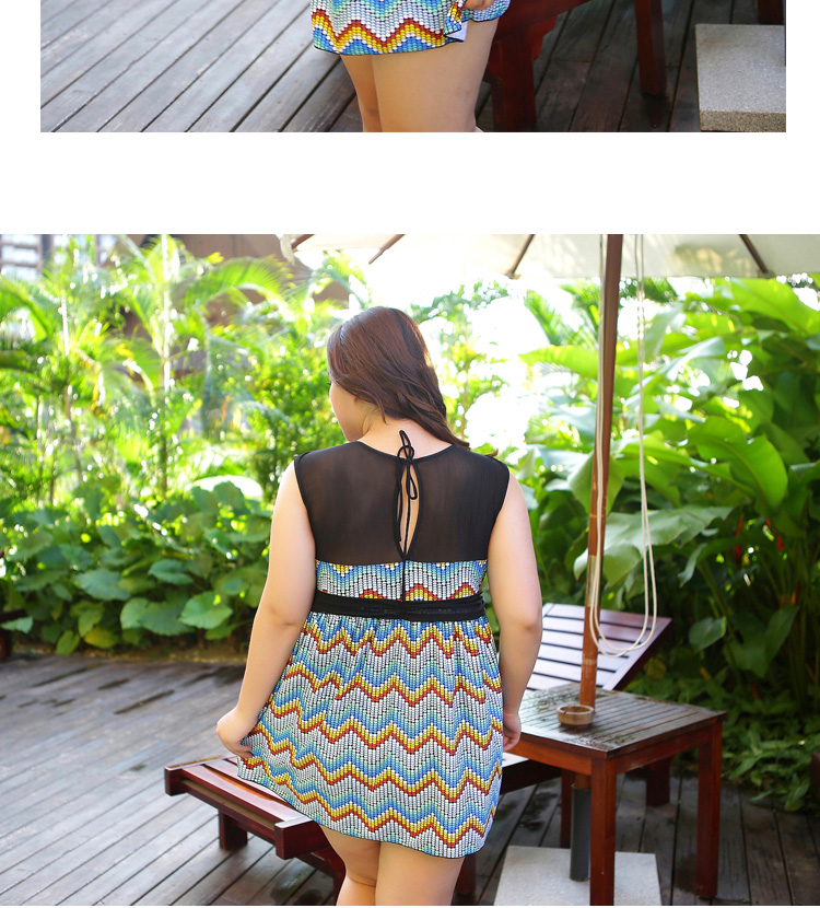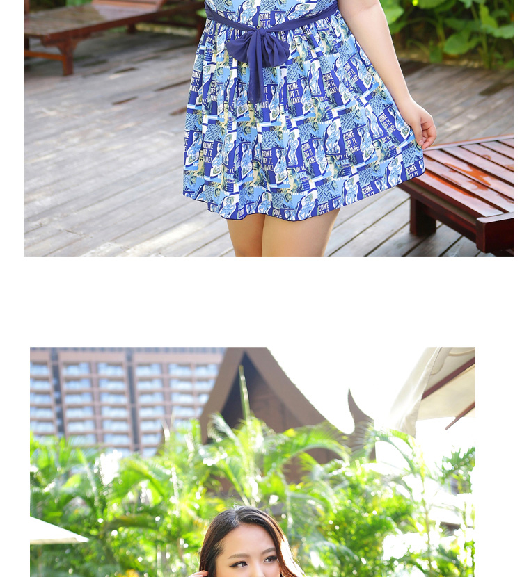 ชุดว่ายน้ำคนอ้วนพร้อมส่ง :ชุดว่ายน้ำแฟชั่นสีน้ำเงินแต่งลายกราฟฟิกสีสันสดใส กางเกงขาสั้นใส่ด้านในน่ารักมากๆจ้า